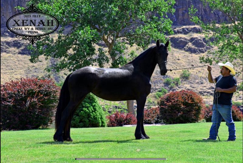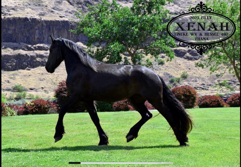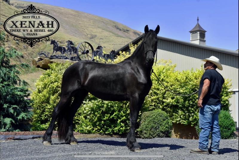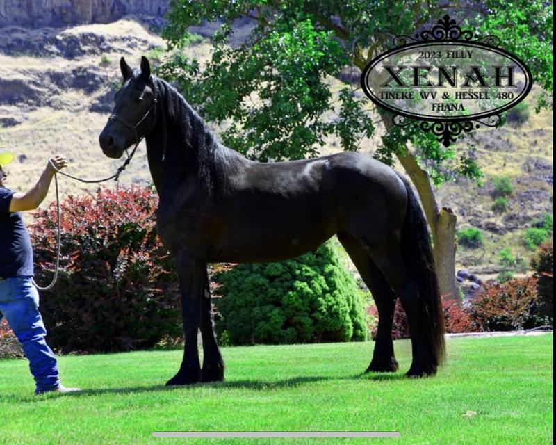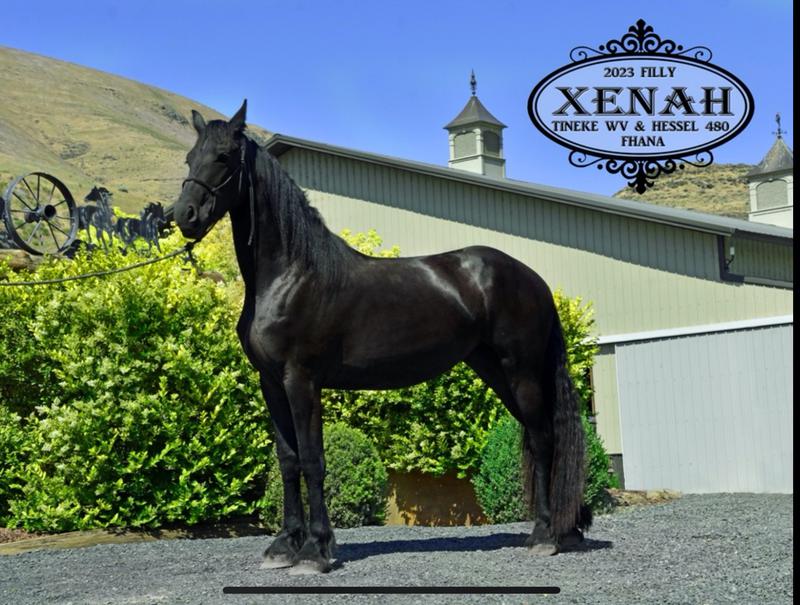Xenah is a very tall, modern type Friesian mare with excellent conformation and three solid gaits. She is very gentle and loves attention.